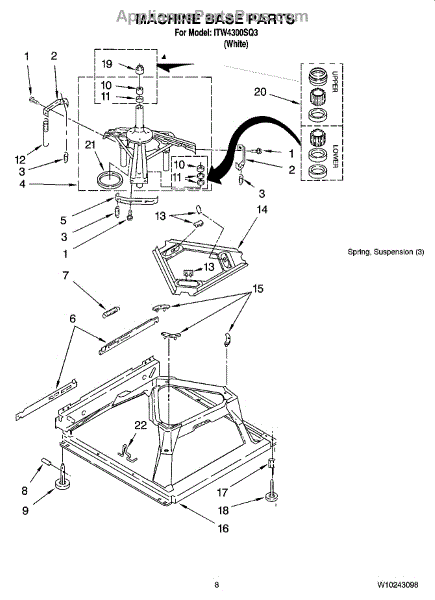 Parts for Whirlpool ITW4300SQ3: 05 - Machine Base Parts