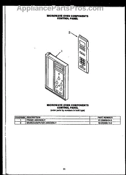 Parts for Amana EKS396: 05 - Microwave Oven Components Controlpanel Parts