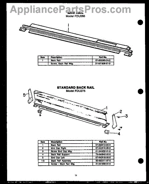Parts for Amana FDU265: 05 - Mini Rail Parts