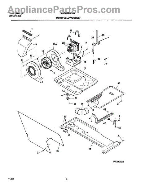 The Blower Wheel is an OEM part for Frigidaire clothes dryers. This component works to propel hot air through clothes during drying cycles. Causes of a bad blower wheel involve wear from years of operation, such as bearing deterioration or plastic fan blade cracking/warping. Foreign object damage or improper cleaning techniques pose other risk factors. Symptoms of a bad blower wheel include: