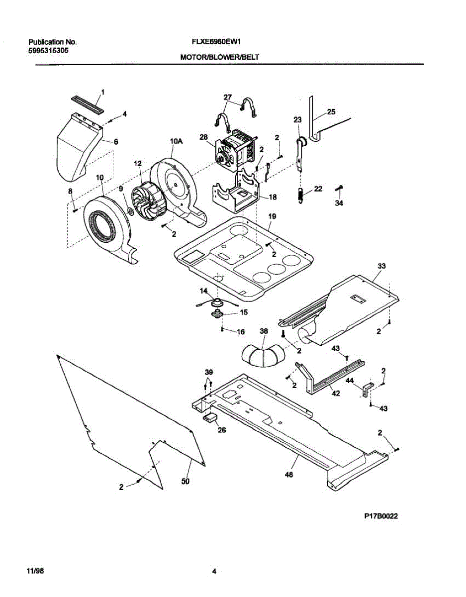The blower housing assembly encloses the blower wheel and channels air through the unit's coils. Replacing a cracked or warped housing helps restore smooth airflow and reduce blower noise caused by rubbing or misalignment.