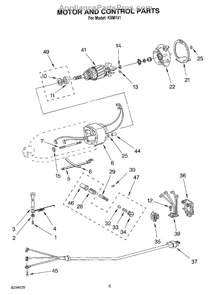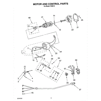 Motor brush holder includes illustration numbers: 28, 32, 33, 34, & 46.