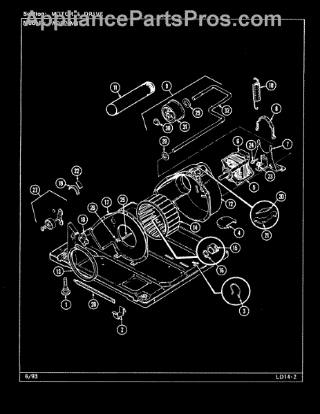 This dryer exhaust fan is used on some Admiral, Crosley, Hoover, Magic Chef, Maytag, Montgomery Ward and Norge brands. Size: 3-1/8 inches deep, 7 1/2 inch fin diameter, 6 3/4 inch hub diameter, 20 standard fins, 1/2 inch diameter motor shaft, 7/16 inch diameter motor shaft to flat side of shaft. Blower wheel clamp not included. For the clamp order 25-7855.