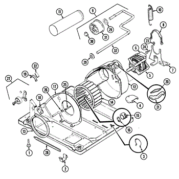 This dryer exhaust fan is used on many Admiral, Crosley, Hoover, Magic Chef, Maytag, Montgomery Ward and Norge brands. Size: 3-1/8 inches deep, 8 inch fin diameter, 7-1/8 inch hub diameter, 20 standard fins, 1/2 inch diameter motor shaft, 7/16 inch motor shaft diameter to flat side of shaft. Blower wheel clamp not included. For the clamp order WP312967.