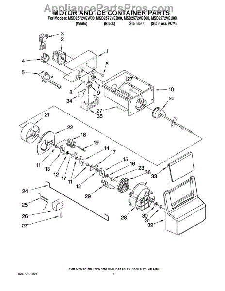Parts for Maytag MSD2572VEB00: 05 - Motor And Ice Container Parts