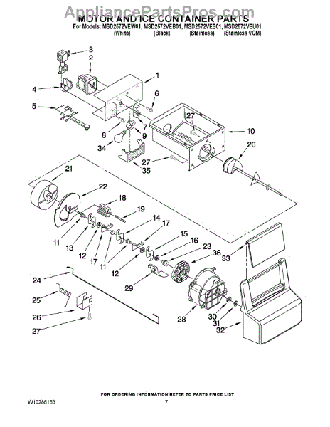 Parts for Maytag MSD2572VEW01: 05 - Motor And Ice Container Parts