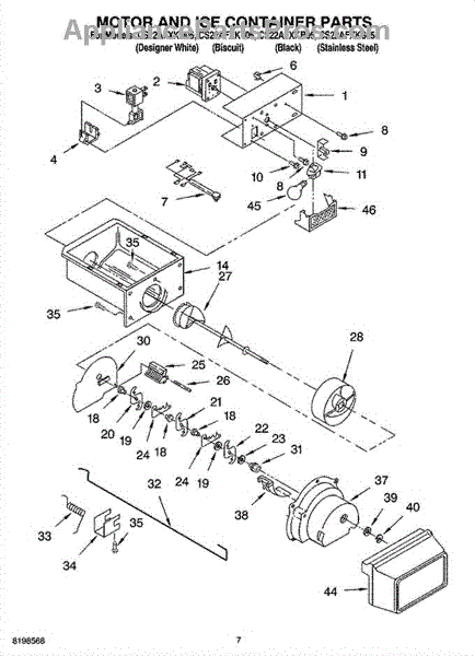 Parts for Whirlpool CS22AFXKS05: 05 - Motor And Ice Container Parts