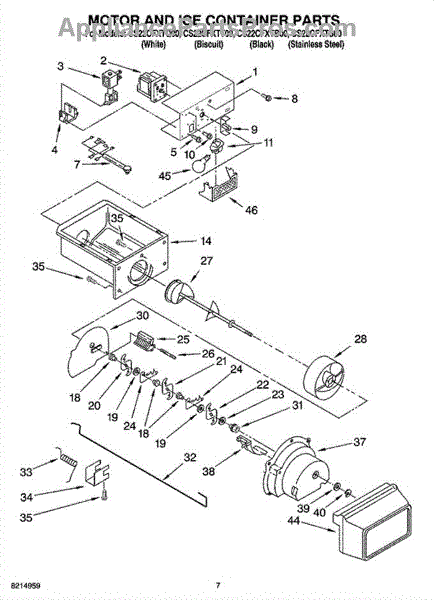 This is the complete horizontal ice dispenser bucket assembly with crusher. It fits 22 cubic foot refrigerator models. For 20 cubic foot models order WP2209778. For 25 and 27 cubic foot models order WPW10312300.
