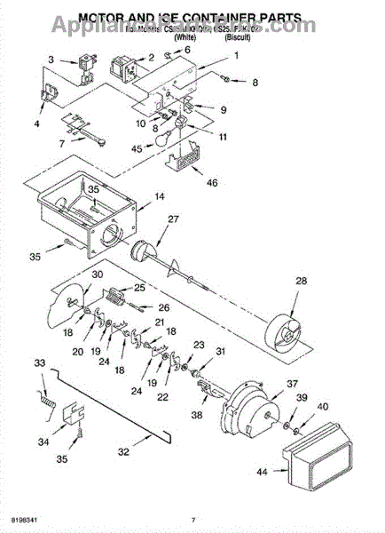 Parts for Whirlpool CS25AFXKQ02: 05 - Motor And Ice Container Parts