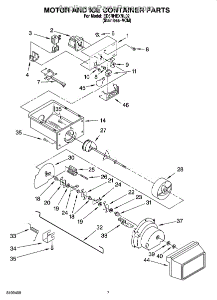 Parts for Whirlpool ED5RHEXNL02: 05 - Motor And Ice Container Parts