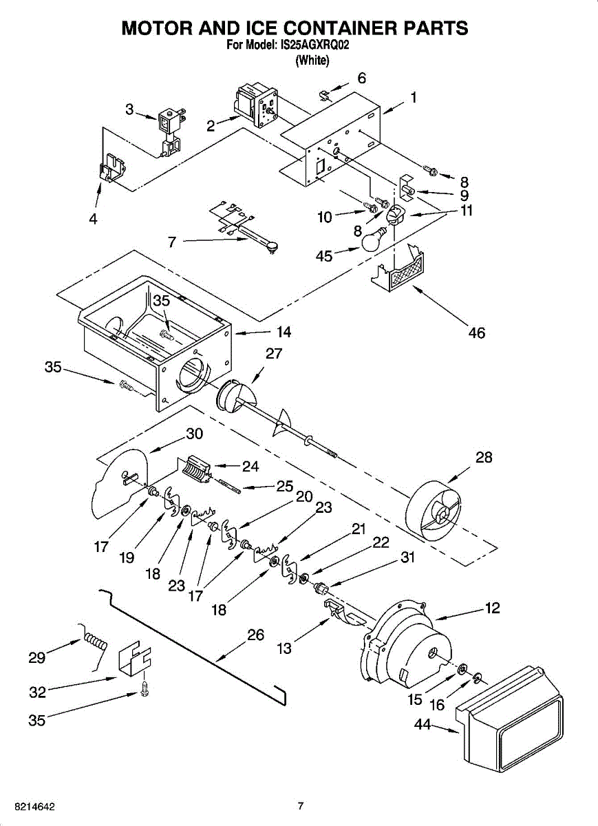 The Ice Container Assembly is an OEM part for Whirlpool refrigerators. This assembly includes the ice bin, where ice is collected, and often features integrated mechanisms or augers for dispensing ice through the refrigerator's door.