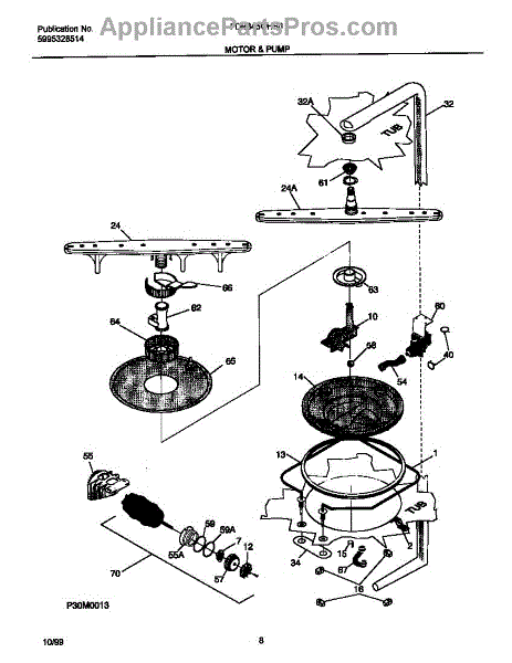 This sump gasket seals the connection between the dishwasher tub and the sump/pump assembly. Replacing a flattened or cracked gasket restores a watertight barrier to help stop leaks from the base and protect floors and cabinetry.