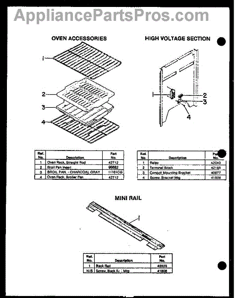 Parts for Amana ESS306-2D / ESS30602D: 05 - Oven Acs / High Voltage Section / Mini Rail Parts