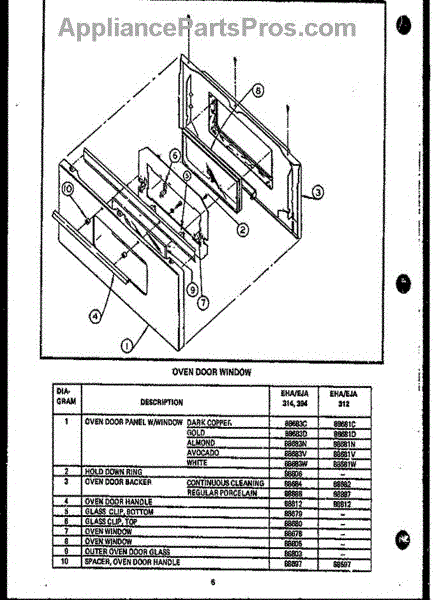 Parts for Amana EHA112: 05 - Oven Door Assy W / Window Parts