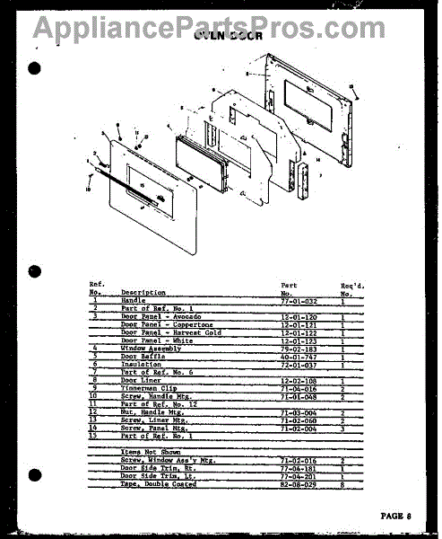 Parts for Amana QKO-661E: 05 - Oven Door Parts
