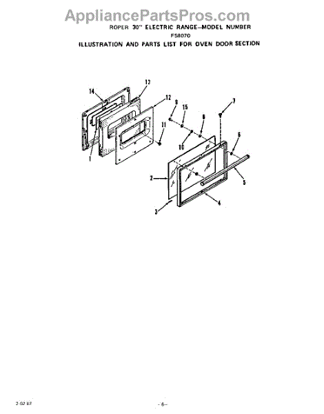 Parts for Whirlpool F5807W0: 05 - Oven Door Parts