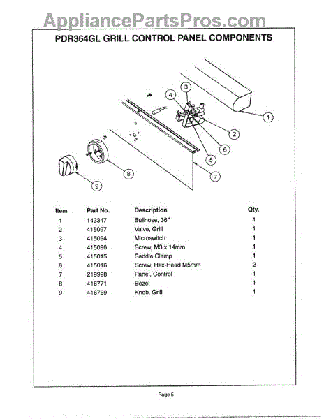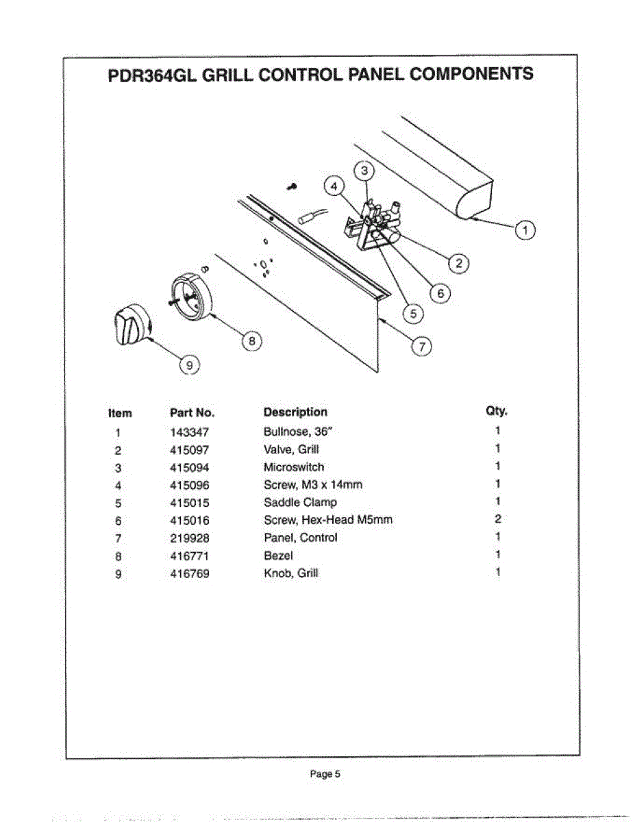 Parts for Thermador PDR366ZS: 05 - Pdr364gl Grill Control Panel Parts