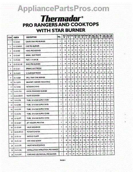 Parts for Thermador STAR BURNER: 05 - Pro Ranges & Cooktops Parts