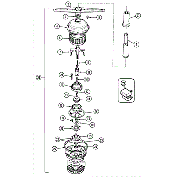 This drain impeller assembly circulates and ejects wash water through the washer's drain pump, restoring proper drainage and helping prevent standing water after a cycle. Durable design fits into the pump housing for reliable performance. What it does: