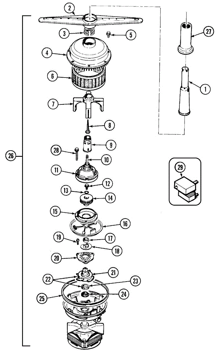 Fixes standing water after cycles. This drain impeller assembly circulates and ejects wash water through the pump, restoring proper drainage.