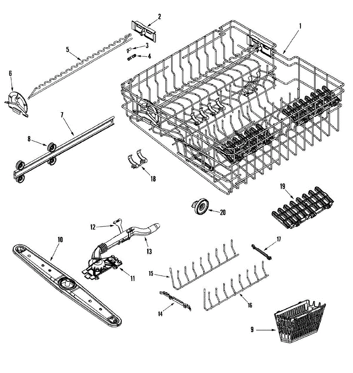 Replacement silverware basket for dishwasher lower rack. Holds utensils upright and separated during wash cycles. Order if yours is cracked or missing.