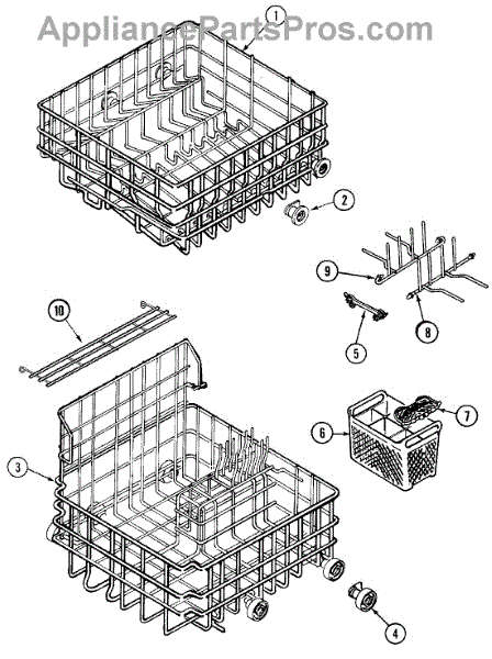 This is an upper dish rack assembly for dishwashers. It is located in the top section of the dishwasher and is meant to ensure dishes stay in place while the dishwasher is running. The dish rack assembly is durable but can experience damage, stains, or other issues. This may make it unsuitable for holding dishes in the appliance. If the part is damaged or malfunctioning, it should be replaced with a new part.This is a simple replacement that takes only a few minutes to complete. First, open up the dishwasher. Remove the bottom rack if desired to create more room to work with the upper dish rack assembly. Take a small flathead screwdriver and use it to release the retaining tabs located on the stop clips. Remove the stop clips and the old dish rack assembly will slide out. Align the new assembly and slide it into place before reassembling other small parts.This upper dish rack assembly is used as an authentic OEM replacement part for dishwashers manufactured by Maytag, Norge, Jenn Air, Admiral, Amana, Crosley, and Magic Chef. The part is sold as an individual component.