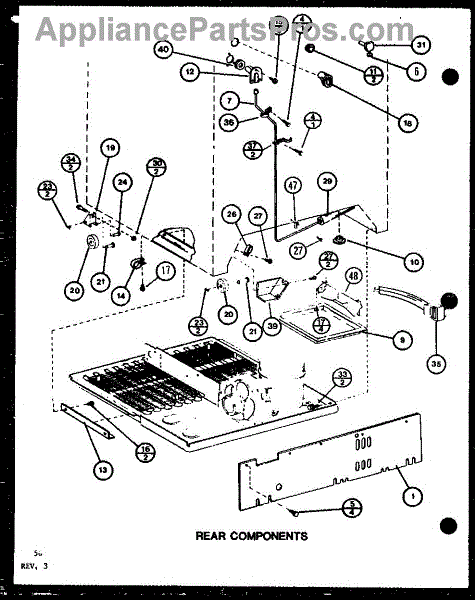 This factory screw secures appliance components to their mounting points. Replace missing, worn, or stripped hardware to restore a tight fit, proper alignment, and quieter operation across the affected assembly.