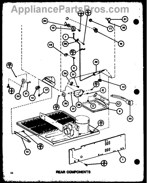 This factory screw secures appliance components to their mounting points. Replace missing, worn, or stripped hardware to restore a tight fit, proper alignment, and quieter operation across the affected assembly.