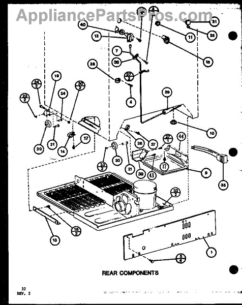 This factory screw secures appliance components to their mounting points. Replace missing, worn, or stripped hardware to restore a tight fit, proper alignment, and quieter operation across the affected assembly.