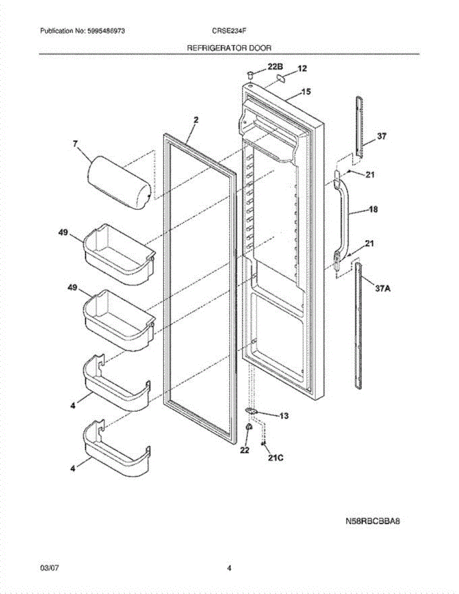 The Door Shelf Bin is an OEM part for Frigidaire refrigerators. It serves as a storage space attached to the inner door panel, providing convenient access to frequently used items such as drinks, condiments, and snacks.