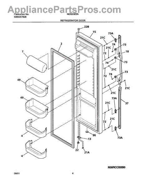 Outer door panel for refrigerator. Replaces cracked, dented, or discolored exterior panels. Includes complete assembly for a fresh appearance.
