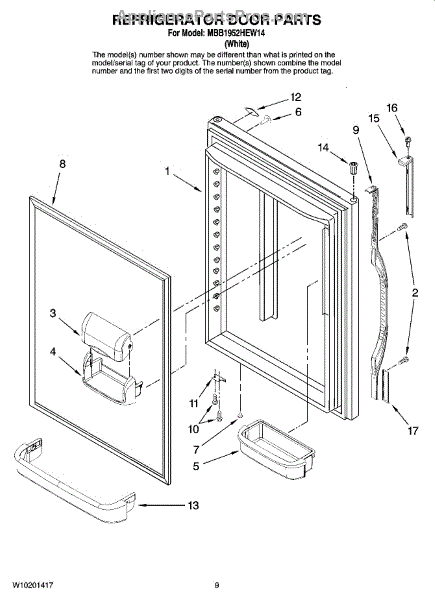 This medium refrigerator door bin replaces a cracked or missing shelf on the fresh-food door, restoring secure, organized storage for bottles, jars, and condiments. It snaps into the door rails for a stable, factory fit.