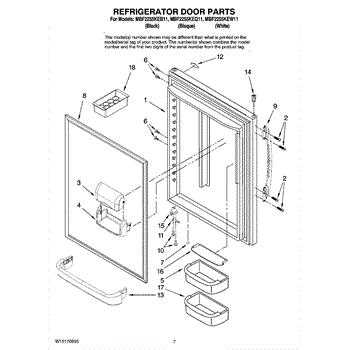 The Door Closure is an OEM replacement part for Whirlpool refrigerators. It is a small component that the door rides on that allows it to open and close properly. Causes of impaired operation involve age-related spring coil fatigue, dislodged or cracked plastic housing pieces, or confined door alignment stripping closure grooves. Symptoms of a faulty closure include: