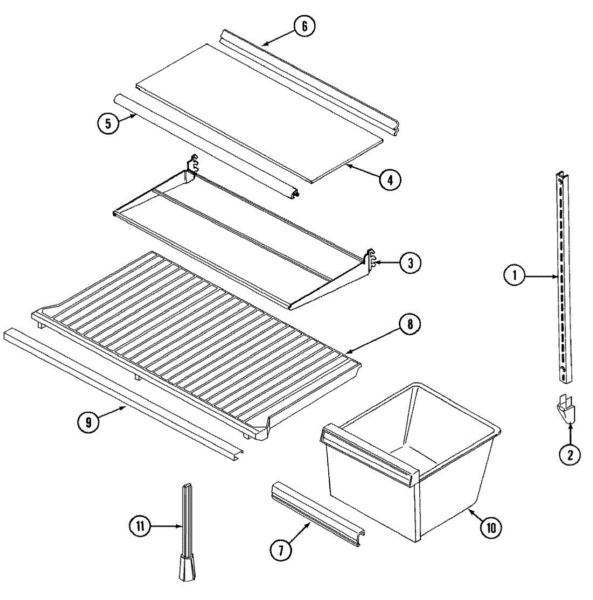 • Supports the middle of the crisper cover/glass to prevent sagging
