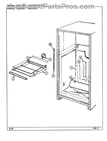 This factory screw secures appliance components to their mounting points. Replace missing, worn, or stripped hardware to restore a tight fit, proper alignment, and quieter operation across the affected assembly.