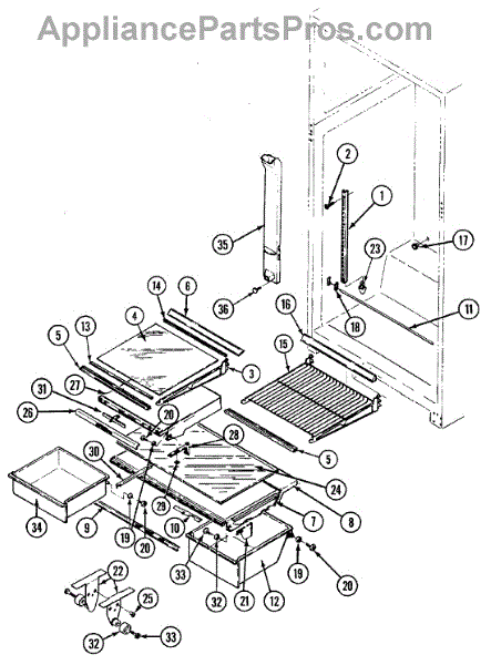 This factory screw secures appliance components to their mounting points. Replace missing, worn, or stripped hardware to restore a tight fit, proper alignment, and quieter operation across the affected assembly.