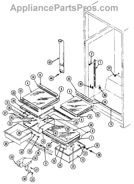 This factory screw secures appliance components to their mounting points. Replace missing, worn, or stripped hardware to restore a tight fit, proper alignment, and quieter operation across the affected assembly.