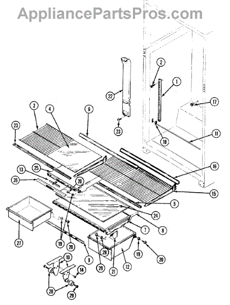 This factory screw secures appliance components to their mounting points. Replace missing, worn, or stripped hardware to restore a tight fit, proper alignment, and quieter operation across the affected assembly.