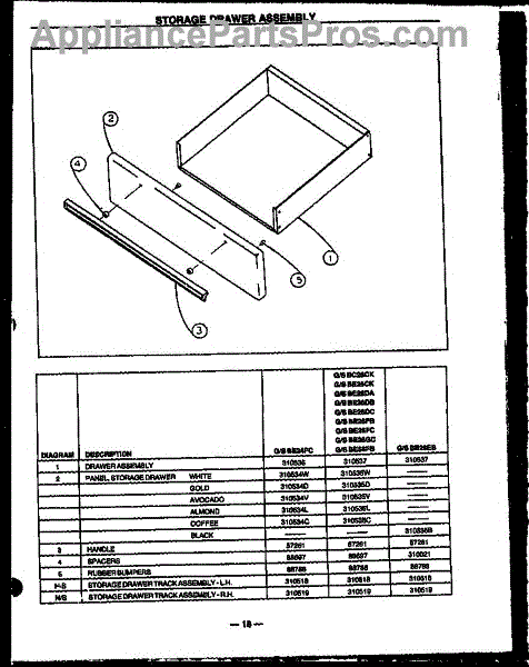 Parts for Amana SBE26FB: 05 - Storage Drawer Assy Parts