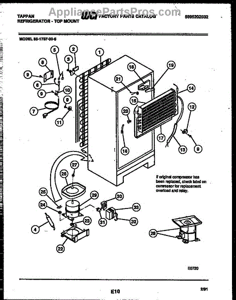 This is a compressor used in several types of home appliances. The compressor is designed to take cold gas in the appliance and place it under pressure so the gas raises in temperature. It is then moved through the refrigerator system to ensure the unit stays cold throughout the appliance. This part can become damaged or malfunction, which may cause the motor to stop running, make the motor noisier, or cause the motor to never stop running.If this happens, the compressor will need to be replaced. A basic set of tools will be needed. A pair of work gloves can also be useful. First, locate the compressor as it may be in various locations depending on the appliance model. Unplug the appliance before removing the compressor. Install the new compressor using the original bolts and nuts before turning the power back on and resuming normal use.This part is sold on an individual basis. The compressor is made to be used with refrigerators, ranges, stoves, ovens, air conditioners, and freezers created by Gibson, Frigidaire, Kelvinator, Montgomery Wards, Westinghouse, Tappan, JCPenney, Universal, and Kenmore. It is an authentic OEM replacement part directly sourced from the manufacturer.