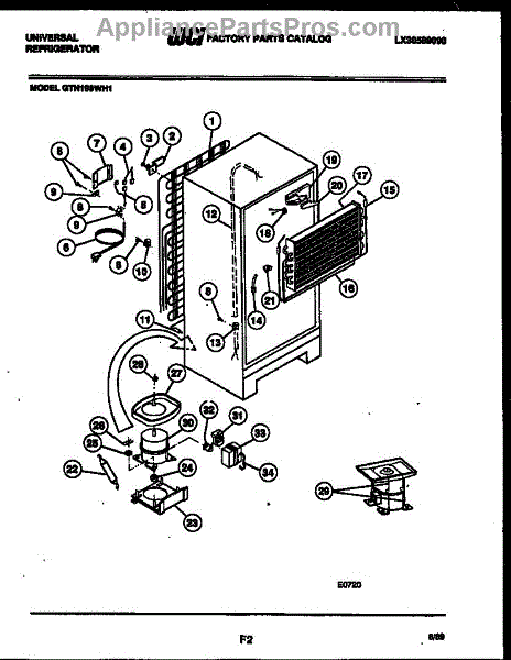 This is a compressor used in several types of home appliances. The compressor is designed to take cold gas in the appliance and place it under pressure so the gas raises in temperature. It is then moved through the refrigerator system to ensure the unit stays cold throughout the appliance. This part can become damaged or malfunction, which may cause the motor to stop running, make the motor noisier, or cause the motor to never stop running.If this happens, the compressor will need to be replaced. A basic set of tools will be needed. A pair of work gloves can also be useful. First, locate the compressor as it may be in various locations depending on the appliance model. Unplug the appliance before removing the compressor. Install the new compressor using the original bolts and nuts before turning the power back on and resuming normal use.This part is sold on an individual basis. The compressor is made to be used with refrigerators, ranges, stoves, ovens, air conditioners, and freezers created by Gibson, Frigidaire, Kelvinator, Montgomery Wards, Westinghouse, Tappan, JCPenney, Universal, and Kenmore. It is an authentic OEM replacement part directly sourced from the manufacturer.