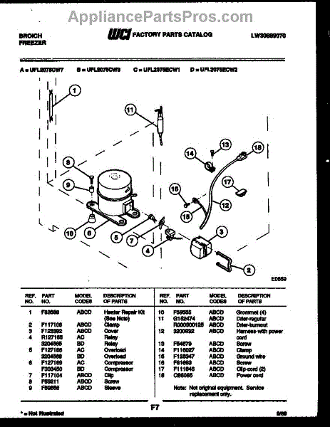 This is a compressor used in several types of home appliances. The compressor is designed to take cold gas in the appliance and place it under pressure so the gas raises in temperature. It is then moved through the refrigerator system to ensure the unit stays cold throughout the appliance. This part can become damaged or malfunction, which may cause the motor to stop running, make the motor noisier, or cause the motor to never stop running.If this happens, the compressor will need to be replaced. A basic set of tools will be needed. A pair of work gloves can also be useful. First, locate the compressor as it may be in various locations depending on the appliance model. Unplug the appliance before removing the compressor. Install the new compressor using the original bolts and nuts before turning the power back on and resuming normal use.This part is sold on an individual basis. The compressor is made to be used with refrigerators, ranges, stoves, ovens, air conditioners, and freezers created by Gibson, Frigidaire, Kelvinator, Montgomery Wards, Westinghouse, Tappan, JCPenney, Universal, and Kenmore. It is an authentic OEM replacement part directly sourced from the manufacturer.