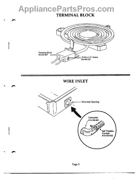 Parts for Thermador ST2: 05 - Terminal Block & Wire Inlet Parts