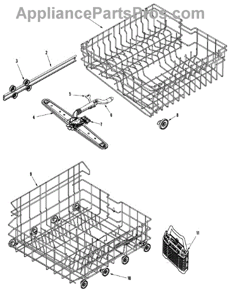 Note: New rack no longer includes removable tines or cup shelf. This part is a lower dishrack. The lower dishrack is the lower shelf of a dishwasher that holds plates, bowls, and utensils. To remove the old dishrack, simply pull it out and lift the wheels up from its track. Set it off the side, and lift the new dishrack. Slide it into its track and make sure it is locked in. If it is gliding in and out in a smooth way, it has been installed properly.This genuine replacement OEM part is sold individually and is compatible with Whirlpool brands include Whirlpool, Maytag, KitchenAid, Jenn-Air, Amana, Magic Chef, Admiral, Norge, Roper, and Sears/Kenmore brand appliances.