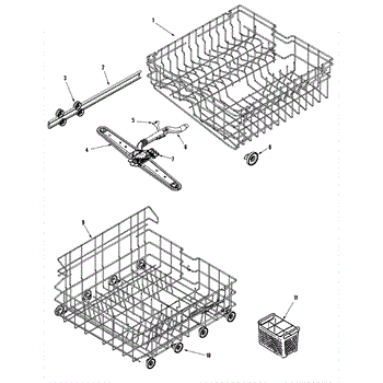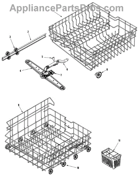 Note: New rack no longer includes removable tines or cup shelf. This part is a lower dishrack. The lower dishrack is the lower shelf of a dishwasher that holds plates, bowls, and utensils. To remove the old dishrack, simply pull it out and lift the wheels up from its track. Set it off the side, and lift the new dishrack. Slide it into its track and make sure it is locked in. If it is gliding in and out in a smooth way, it has been installed properly.This genuine replacement OEM part is sold individually and is compatible with Whirlpool brands include Whirlpool, Maytag, KitchenAid, Jenn-Air, Amana, Magic Chef, Admiral, Norge, Roper, and Sears/Kenmore brand appliances.