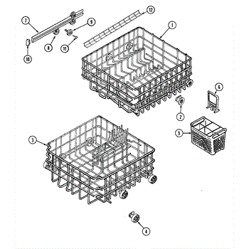 This is an upper dish rack assembly for dishwashers. It is located in the top section of the dishwasher and is meant to ensure dishes stay in place while the dishwasher is running. The dish rack assembly is durable but can experience damage, stains, or other issues. This may make it unsuitable for holding dishes in the appliance. If the part is damaged or malfunctioning, it should be replaced with a new part.This is a simple replacement that takes only a few minutes to complete. First, open up the dishwasher. Remove the bottom rack if desired to create more room to work with the upper dish rack assembly. Take a small flathead screwdriver and use it to release the retaining tabs located on the stop clips. Remove the stop clips and the old dish rack assembly will slide out. Align the new assembly and slide it into place before reassembling other small parts.This upper dish rack assembly is used as an authentic OEM replacement part for dishwashers manufactured by Maytag, Norge, Jenn Air, Admiral, Amana, Crosley, and Magic Chef. The part is sold as an individual component.