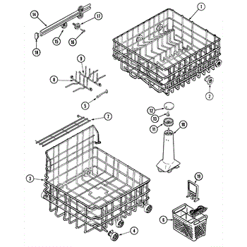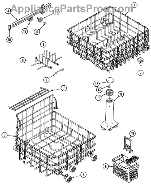 This is an upper dish rack assembly for dishwashers. It is located in the top section of the dishwasher and is meant to ensure dishes stay in place while the dishwasher is running. The dish rack assembly is durable but can experience damage, stains, or other issues. This may make it unsuitable for holding dishes in the appliance. If the part is damaged or malfunctioning, it should be replaced with a new part.This is a simple replacement that takes only a few minutes to complete. First, open up the dishwasher. Remove the bottom rack if desired to create more room to work with the upper dish rack assembly. Take a small flathead screwdriver and use it to release the retaining tabs located on the stop clips. Remove the stop clips and the old dish rack assembly will slide out. Align the new assembly and slide it into place before reassembling other small parts.This upper dish rack assembly is used as an authentic OEM replacement part for dishwashers manufactured by Maytag, Norge, Jenn Air, Admiral, Amana, Crosley, and Magic Chef. The part is sold as an individual component.