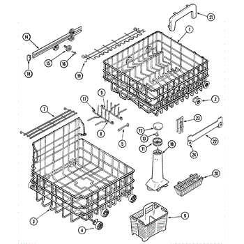 This is an upper dish rack assembly for dishwashers. It is located in the top section of the dishwasher and is meant to ensure dishes stay in place while the dishwasher is running. The dish rack assembly is durable but can experience damage, stains, or other issues. This may make it unsuitable for holding dishes in the appliance. If the part is damaged or malfunctioning, it should be replaced with a new part.This is a simple replacement that takes only a few minutes to complete. First, open up the dishwasher. Remove the bottom rack if desired to create more room to work with the upper dish rack assembly. Take a small flathead screwdriver and use it to release the retaining tabs located on the stop clips. Remove the stop clips and the old dish rack assembly will slide out. Align the new assembly and slide it into place before reassembling other small parts.This upper dish rack assembly is used as an authentic OEM replacement part for dishwashers manufactured by Maytag, Norge, Jenn Air, Admiral, Amana, Crosley, and Magic Chef. The part is sold as an individual component.