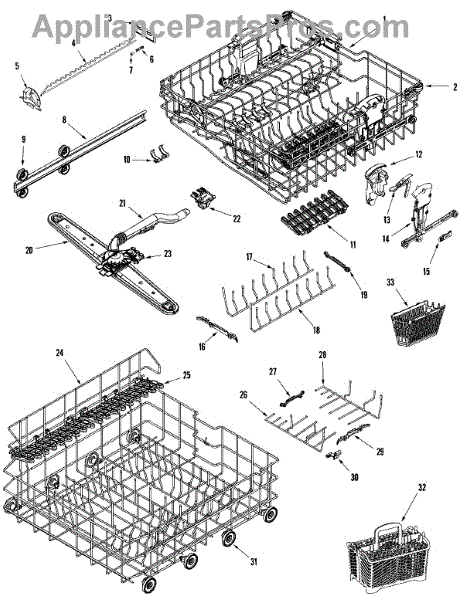 You should replace the silverware basket assembly if it becomes cracked, warped, or damaged. Causes of a bad silverware basket assembly can include regular wear and tear from repeated use, damage from overloading or mishandling, and exposure to high temperatures.