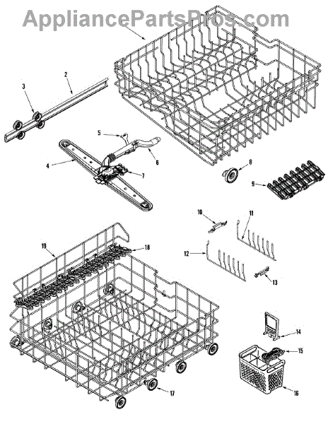 Note: New rack no longer includes removable tines or cup shelf. This part is a lower dishrack. The lower dishrack is the lower shelf of a dishwasher that holds plates, bowls, and utensils. To remove the old dishrack, simply pull it out and lift the wheels up from its track. Set it off the side, and lift the new dishrack. Slide it into its track and make sure it is locked in. If it is gliding in and out in a smooth way, it has been installed properly.This genuine replacement OEM part is sold individually and is compatible with Whirlpool brands include Whirlpool, Maytag, KitchenAid, Jenn-Air, Amana, Magic Chef, Admiral, Norge, Roper, and Sears/Kenmore brand appliances.